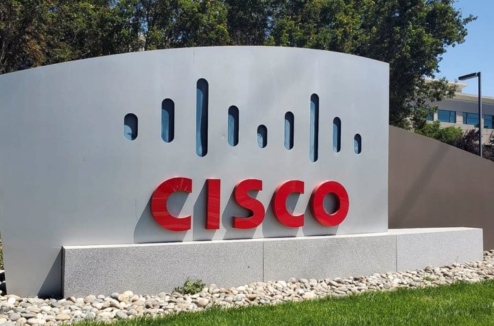 Ein Banner mit dem Logo des Sicherheits- und Kommunikationstechnologieriesen Cisco Systems Inc erscheint am 11. August 2022 vor einem seiner...