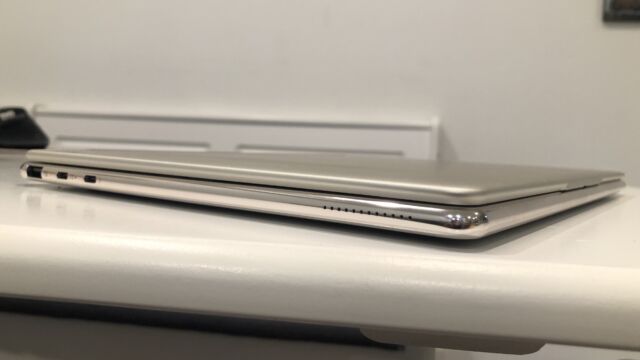 Es gibt auch einen Lautsprecher. Die Perforationen, die das 360-Grad-Scharnier und seine Lautsprecher bedecken, sind das letzte Detail, das den Laptop zu einem Statement-Piece macht. Allerdings mache ich mir noch Sorgen um die Langlebigkeit der Lautsprecher, vor allem wenn man bedenkt, dass die Löcher auch bei geschlossenem Laptop freiliegen.