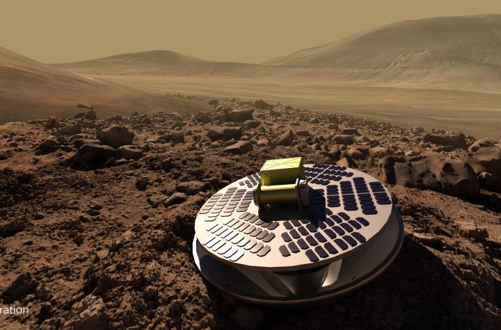 Illustration von SHIELD, einem Mars-Landekonzept, das es kostengünstigen Missionen ermöglichen würde, die Oberfläche des Roten Planeten zu erreichen, indem es...